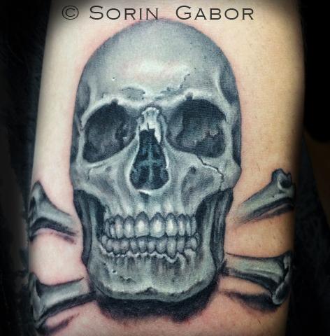 Sorin Gabor At Sugar City Tattoo Tattoos Realistic Realistic Black And Opaque Gray Skull Tattoo On Forearm