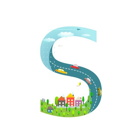 Alphabet Letter S Cartoon Flat Style For Children For Kids Boys And Girls With City Houses Cars Art Print Popmarleo Art Com